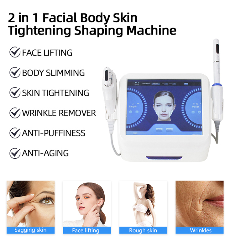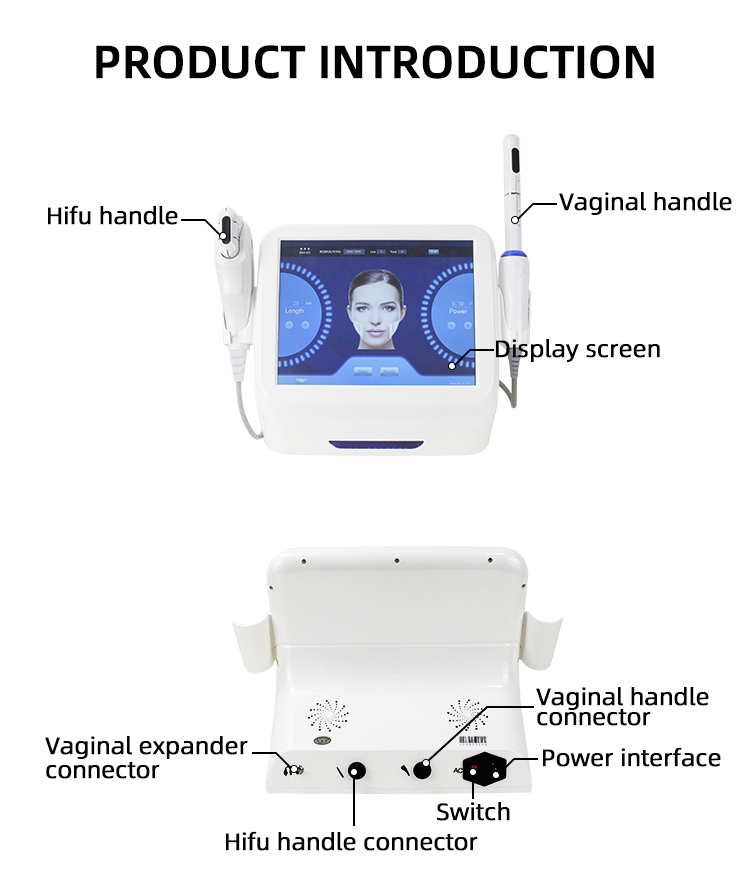 The machine combines skin tightening, face lifting, fat removal and vaginal tightening in one system. This machine is the latest achievements of ultrasound anti-aging treatment, using the characteristics of ultrasound energy, precisely focusing on 3mm depth of shallow SMAS and 4.5mm SMAS, the highly focused energy cause the SMAS produce collagen which has the ability to partially reverse the aging process.